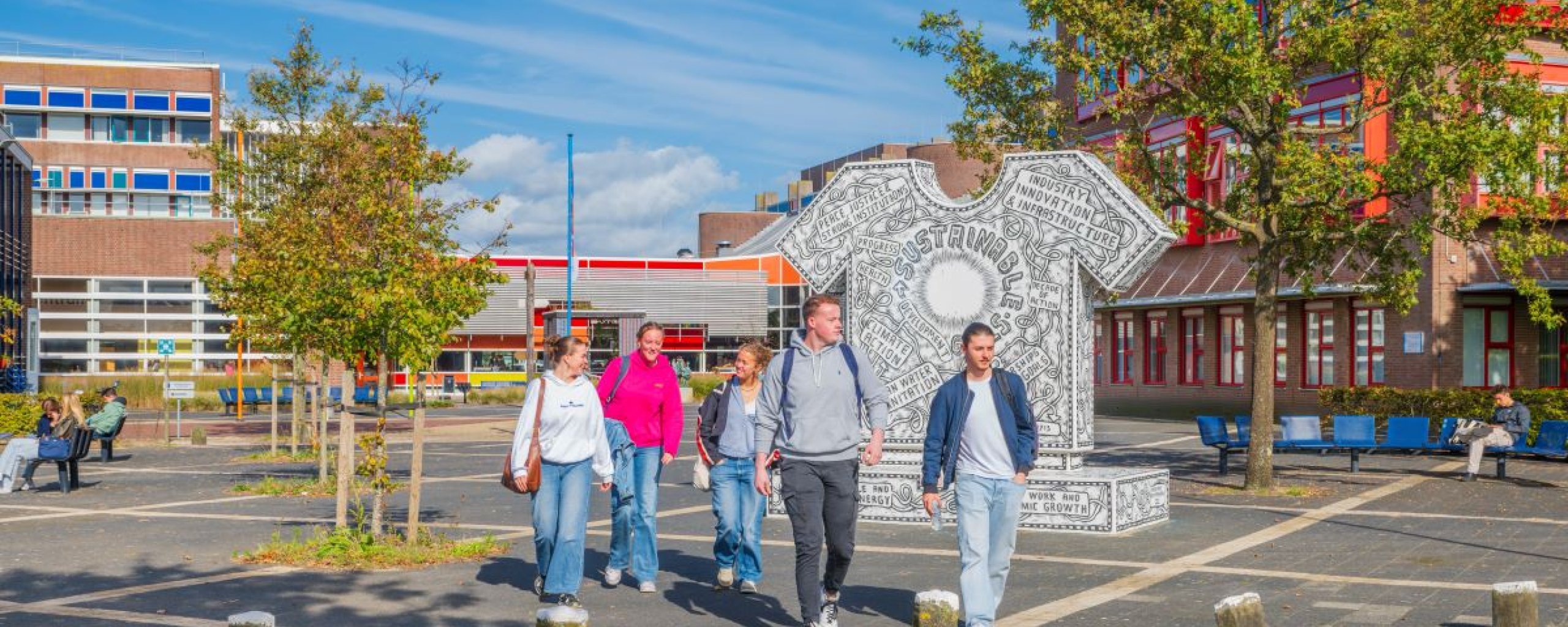 - Het concept 'natuur inclusieve campus' zorgt voor een grotere biodiversiteit en levert een bijdrage aan het welzijn van medewerkers en studenten. Het biedt gelegenheid voor ontspanning en inspiratie, maar helpt ook tegen hittestress in de zomer en met waterberging in natte perioden;