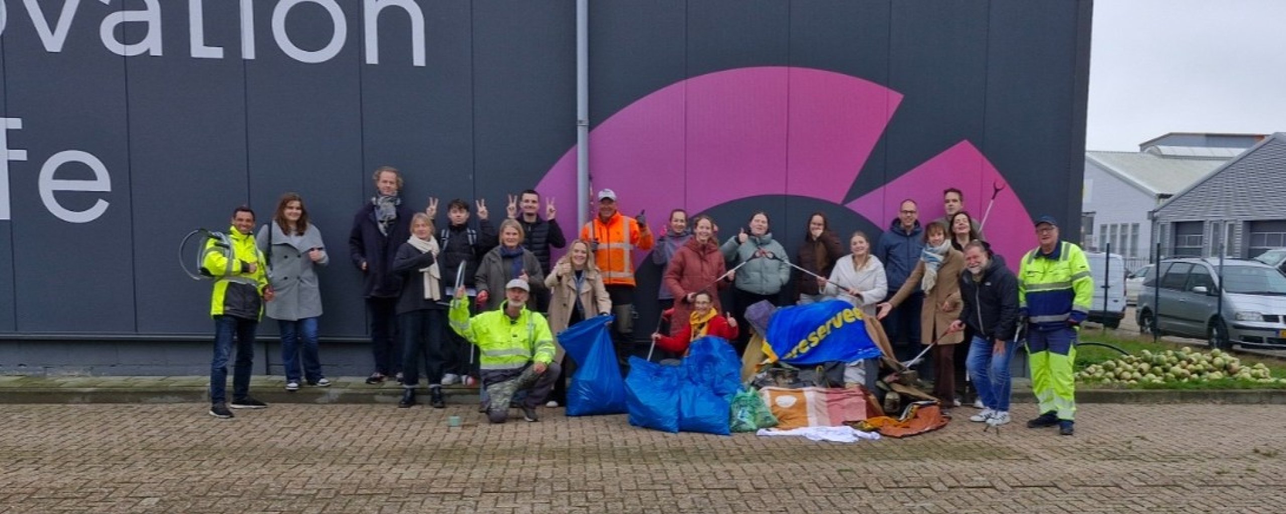 Gewapend met grijpers en vuilniszakken gingen tientallen deelnemers in de ochtend van 11 november 2025 op pad vanaf Innovatiepunt KAAP. Met als doel zwerfafval te verzamelen op en rond de Kenniswerf.